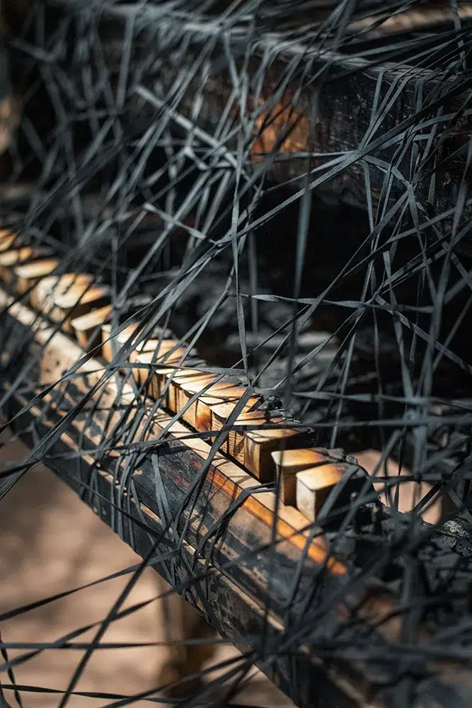 L’exposition, intitulée « Les frémissements de l’âme », est un manifeste chargé de sensibilité, où les émotions sont palpables. L’artiste cherche à exprimer sa vulnérabilité à travers des millions de fils entrelacés, une métaphore puissante de notre humanité.